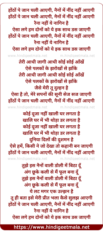 hotho pe jaan chali ayegi, naino me nind nahi ayegi