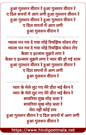 Lyrics of Hua Gulshan Viran Hai - हुआ गुलशन वीरान है