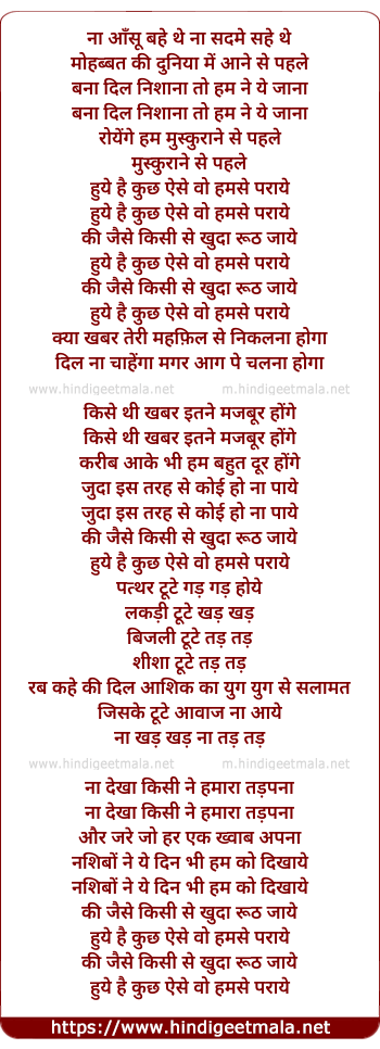 Lyrics of Hue Hai Kuchh Aise - हुये है कुछ ऐसे
