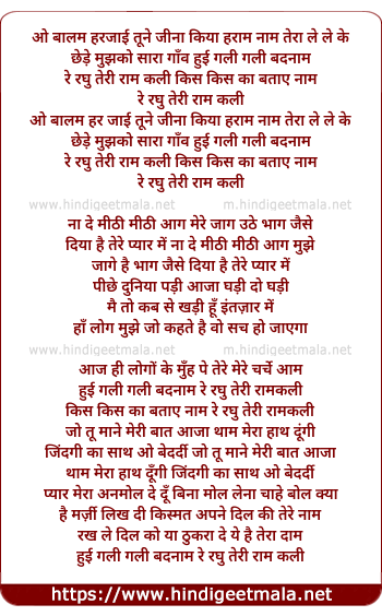 Lyrics of Hui Gali Gali Badnaam, Teri Ram Kali - हुई गली गली बदनाम ,तेरी राम कली
