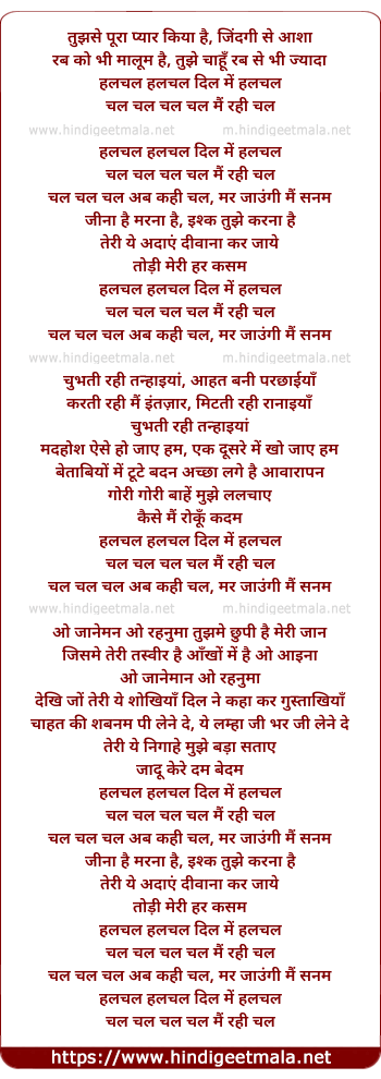 Lyrics of Hulchul Hulchul Dil Mein Hulchul - हलचल हलचल दिल में हलचल