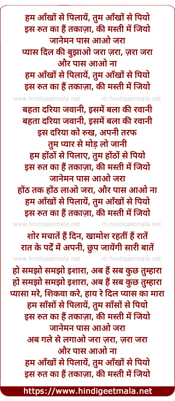Lyrics of Hum Aankho Se Pilaye - हम आँखों से पिलायें