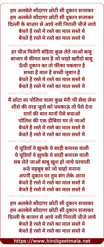 Lyrics of Hum Albele Saudagar - हम अलबेले सौदागर