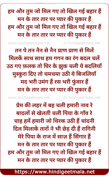Lyrics of Hum Aur Tum Jo Mil Gaye Toh - हम और तुम जो मिल गए तो