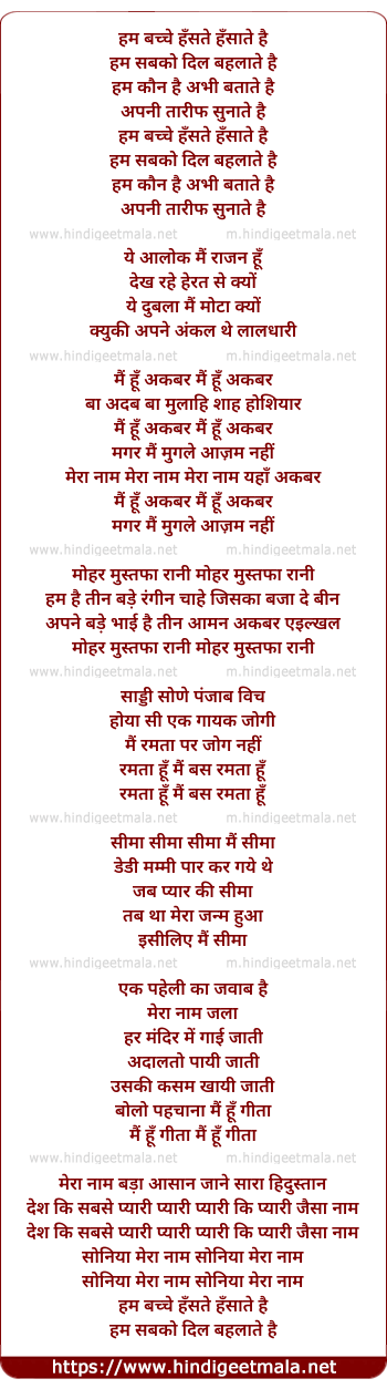 Lyrics of Hum Bachche Hanste Hansate Hai - हम बच्चे हँसते हँसाते है