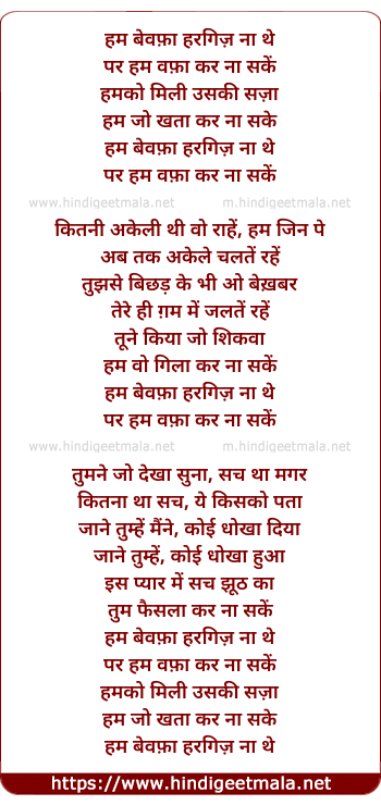 Lyrics of Hum Bewafa Hargiz Na The - II - हम बेवफ़ा हरगिज़ ना थे