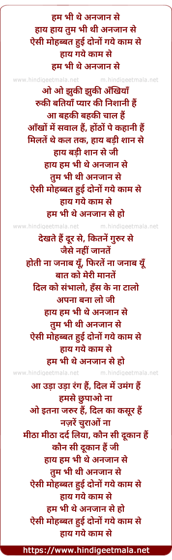 Lyrics of Hum Bhi The Anjaan Se - हम भी थे अनजान से