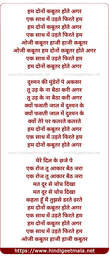 Lyrics of Hum Dono Kabutar - हम दोनों कबूतर
