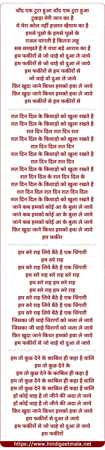 Lyrics of Hum Fakiro Se Jo Chaahe - चाँद एक टुटा हुआ चाँद एक टुटा हुआ