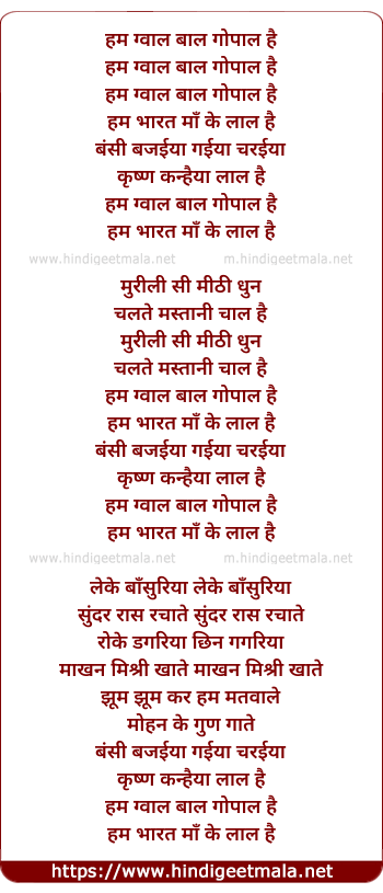 Lyrics of Hum Gwal Baal Gopal Hai - हम ग्वाल बाल गोपाल है