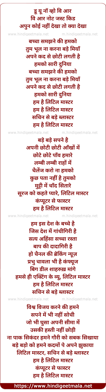 Lyrics of Hum Hai Little Master - हम है लिटिल मास्टर