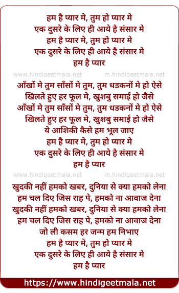 Lyrics of Hum Hai Pyar Me - हम है प्यार मे