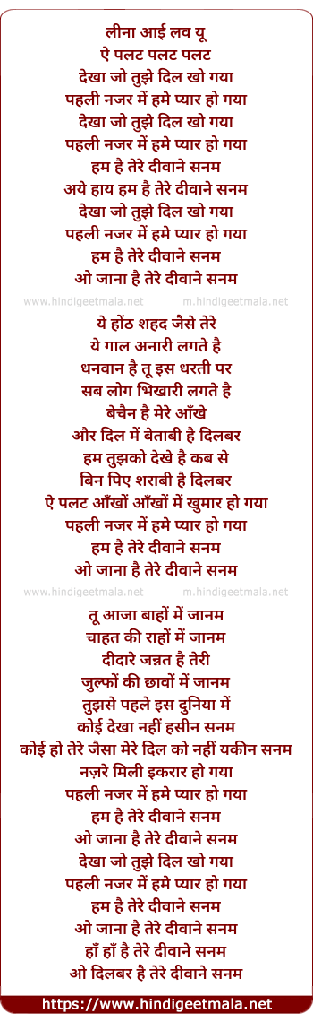 Lyrics of Hum Hai Tere Deewane - हम है तेरे दीवाने