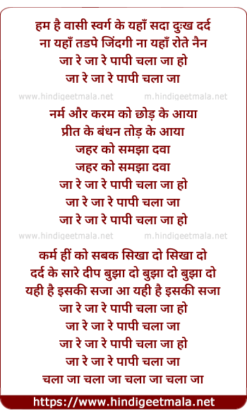 Lyrics of Hum Hai Vaasi Swarg Ke - हम है वासी स्वर्ग के