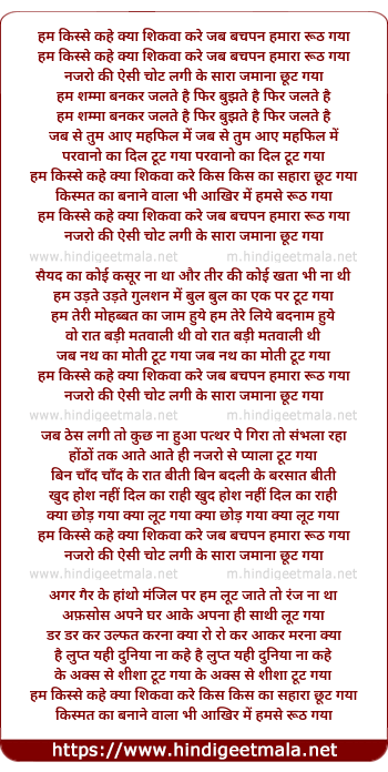 Lyrics of Hum Kisse Kahe Kya Shikwa Kare - हम किससे कहे क्या शिकवा करे