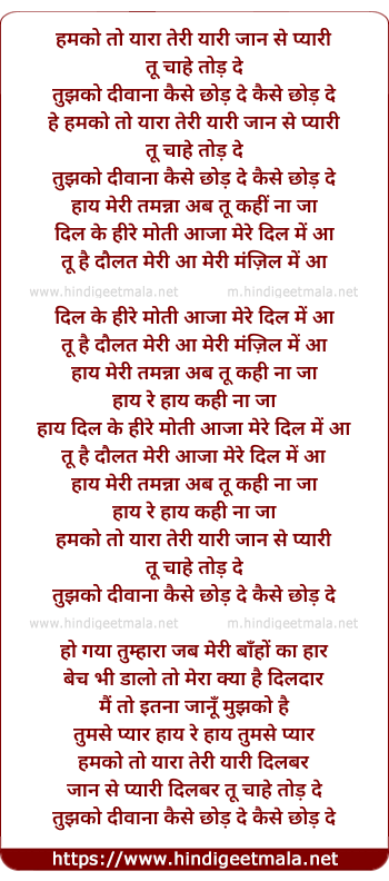 hamko to yara teri yari dilbar