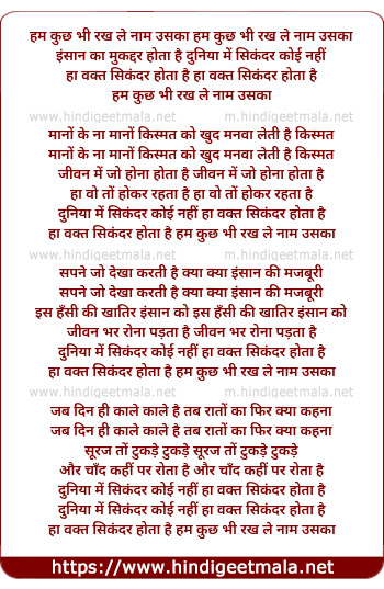 ha waqt sikandar hota hai hum kuch bhi rakh le nam uska