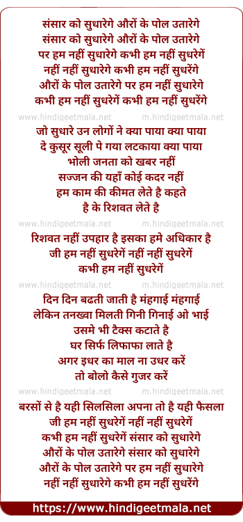 kabhi hum nahi sudhrenge sansar ko sudharenge