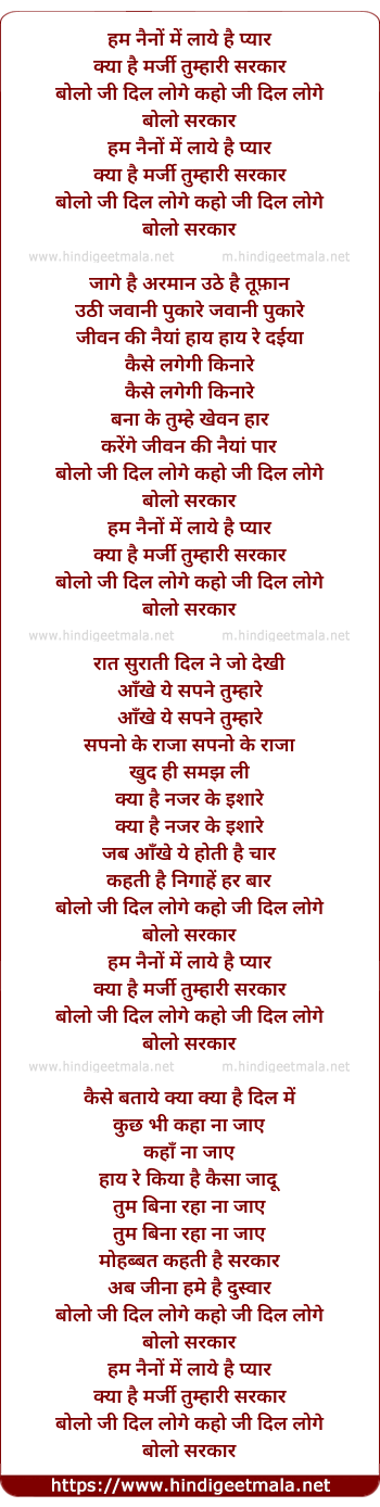 Lyrics of Hum Naino Me Laye Hai Pyar - हम नैनों में लाये है प्यार