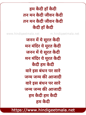Lyrics of Hum Qaidi Haan Qaidi Tan Man Qaidi - हम कैदी हाँ कैदी
