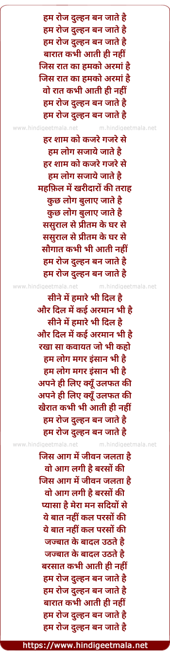 Lyrics of Hum Roz Dulhan Ban Jate Hai - हम रोज दुल्हन बन जाते है