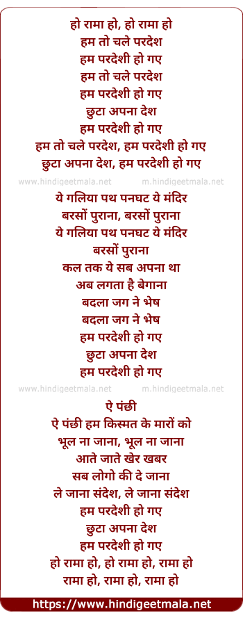 Lyrics of Hum To Chale Pardesh Hum Pardeshi Ho Gaye - हम तो चले परदेश हम परदेशी हो गए