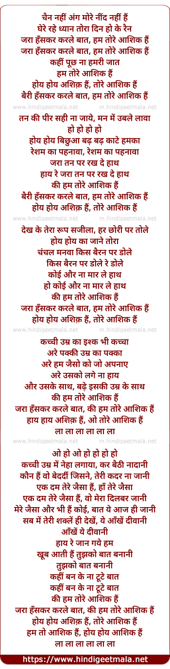 Lyrics of Hum Tore Aashiq - हम तोरे आशिक