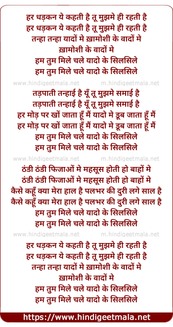 Lyrics of Hum Tum - हर धड़कन ये कहती है तू मुझमे ही रहती है