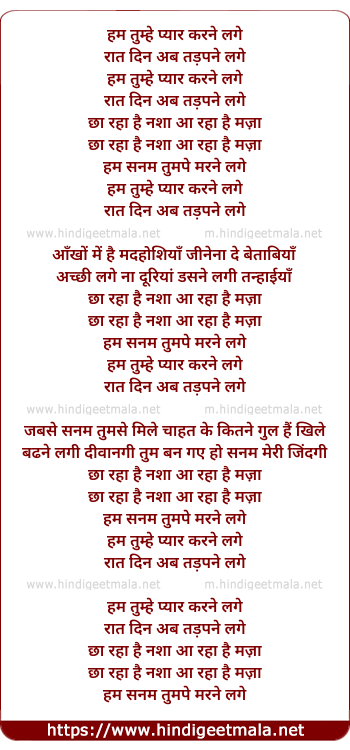 Lyrics of Hum Tumhe Pyar Karne Lage - हम तुम्हे प्यार करने लगे