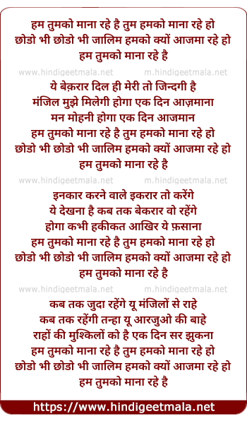Lyrics of Hum Tumko Mana Rahe Hai - हम तुमको माना रहे है