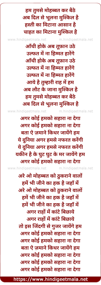 Lyrics of Hum Tumse Mohabbat Kar Baithe - हम तुमसे मोहब्बत कर बैठे