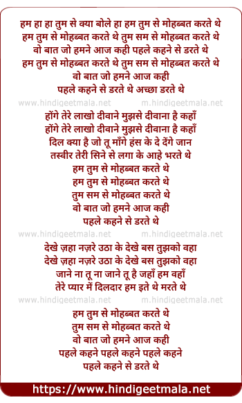 Lyrics of Hum Tumse Mohabbat Karte - हम तुमसे मोहब्बत करते