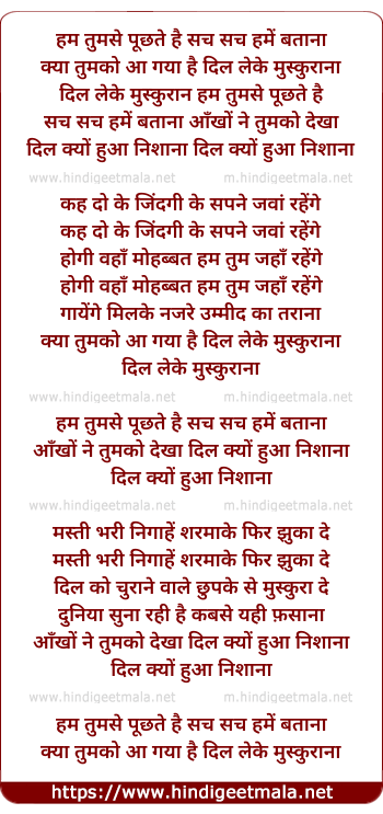 Lyrics of Hum Tumse Puchte Sach - हम तुमसे पूछते सच