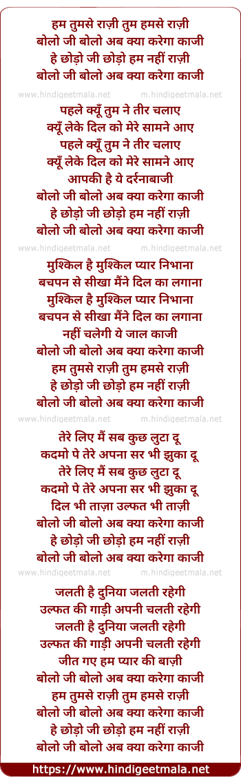 Lyrics of Hum Tumse Razi Tum Humse Razi - हम तुमसे राज़ी तुम हमसे राज़ी