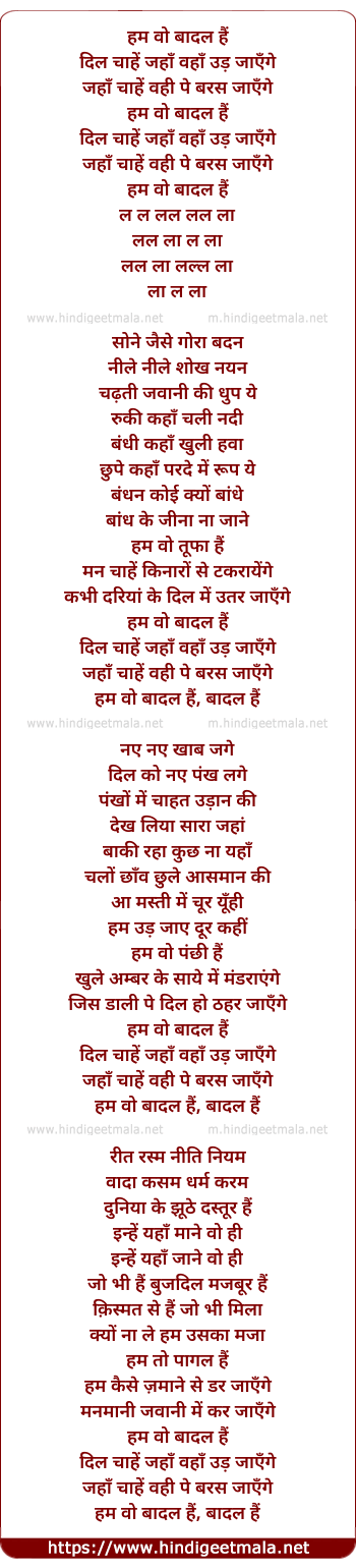 Lyrics of Hum Woh Badal Hai - हम वो बादल हैं