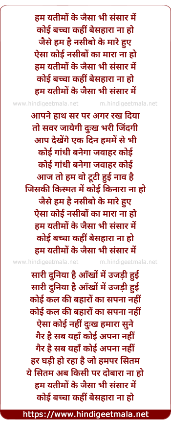 hum yatimo ke jaisa bhi sansar me