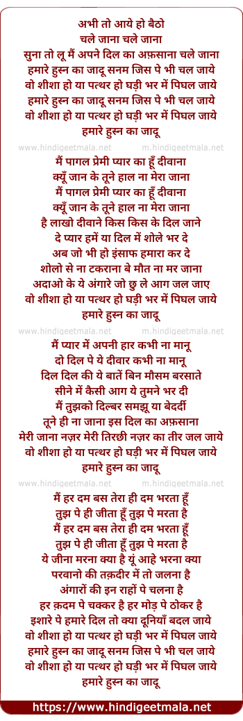 Lyrics of Humare Husn Ka Jadu - हमारे हुस्न का जादू