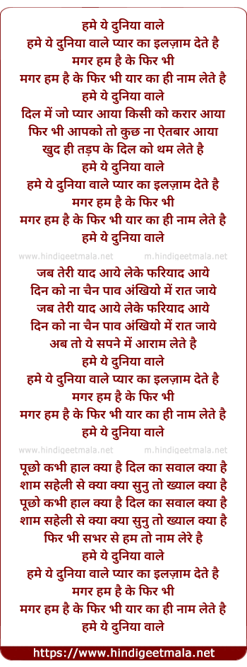 Lyrics of Hume Ye Duniya Wale - हमे ये दुनिया वाले