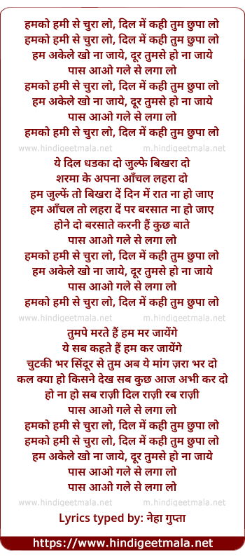 Lyrics of Humko Humise Chura Lo - हमको हमी से चुरा लो