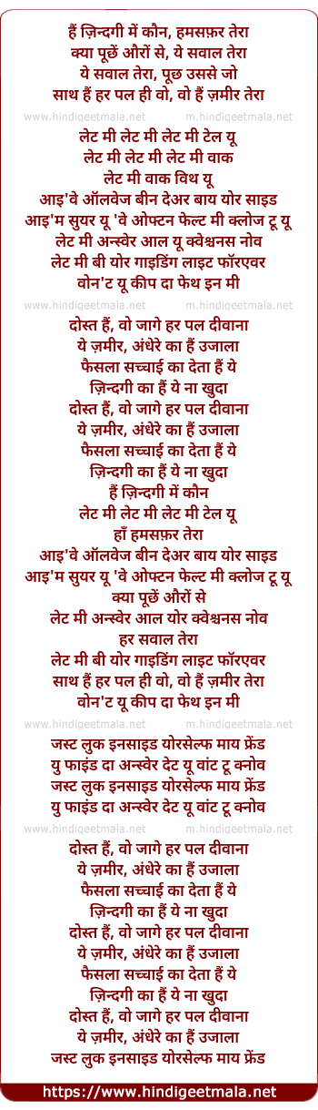 Lyrics of Humsafar (Title Song) - हैं ज़िन्दगी में कौन, हमसफ़र तेरा