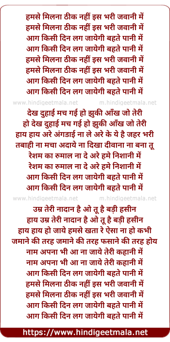 Lyrics of Humse Milna Thik Nahi - हमसे मिलना ठीक नहीं
