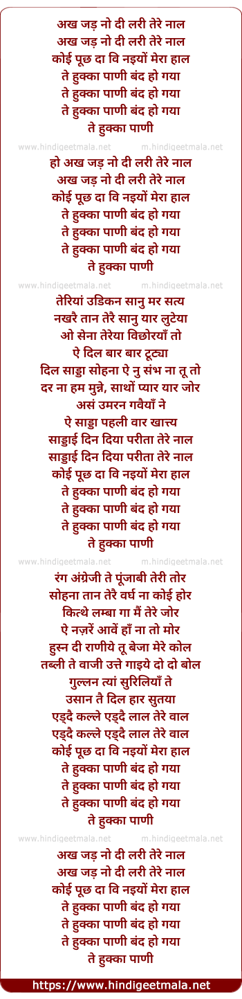 Lyrics of Huqa Pani - अख जड़ नो दी लरी तेरे नाल