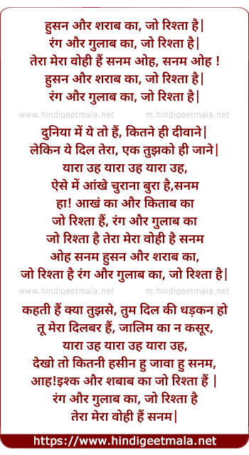 Lyrics of Husn Aur Shaarab Ka Jo Rishta Hai