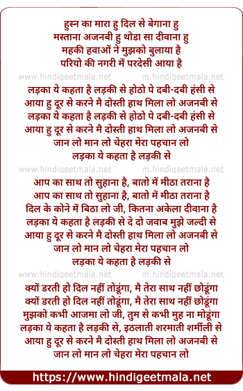 Lyrics of Ladakaa Ye Kahataa Hai Ladaki Se - लड़का ये कहता है लड़की से