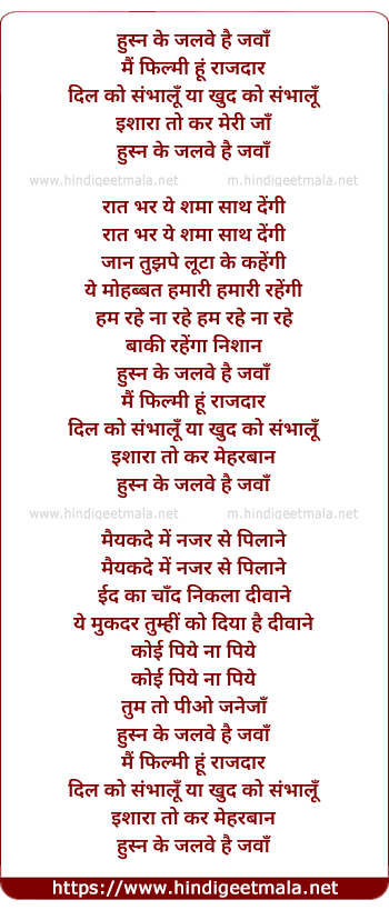 Lyrics of Husn Ke Jalwe Hai Jawaan - हुस्न के जलवे है जवाँ