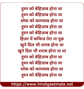 Lyrics of Husn Ko Behijab - हुस्न को बेहिज़ाब