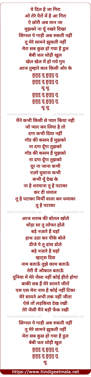 Lyrics of Hututu Tu - ये दिल है जा गिरा