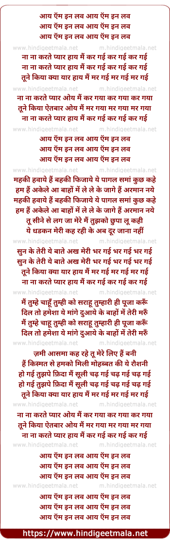 I Am In Love, Naa Naa Karate Pyaar Haay Main To - आय ऍम इन लव, ना ना करते प्यार हाय मैं तो