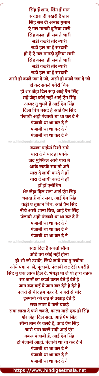 Lyrics of I Am Singh (Daler) - सिंह हैं शान, सिंग हैं मान