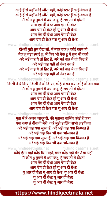 koi hero yahan koi zero yahan, koi star hai koi bekaar hai